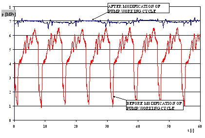 Součástí úpravy byla dále dodávka nového systému řízení a úprava ventilové části čerpadla (ventily pracující v hydrosměsi) a seřízení chodu na bezpulzační provoz. Úprava byla úspěšně provedena na obou čerpadlech ABEL. Technické řešení úpravy čerpadla ABEL firma HYDROSYSTEM project a.s. patentovala.
