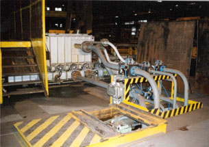 Účel: Odstraňování primárních okují z bram při výrobě plechů